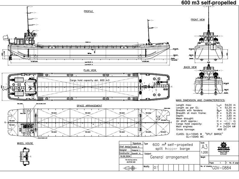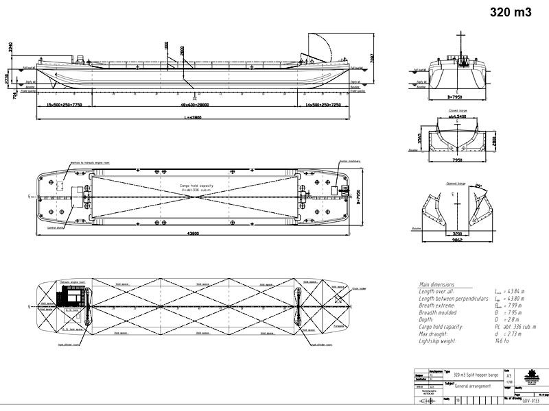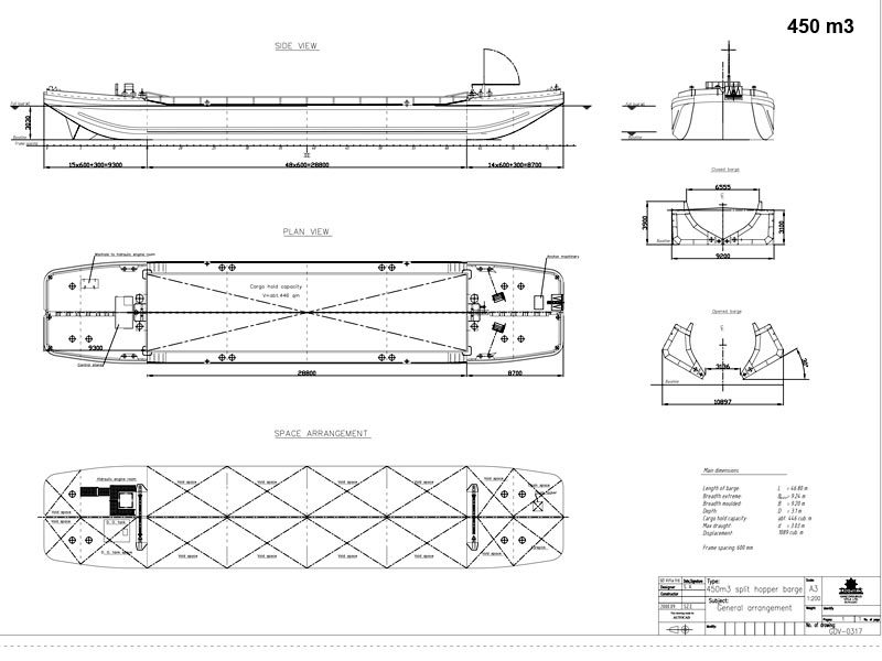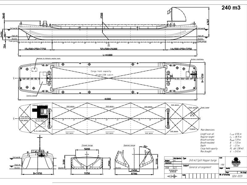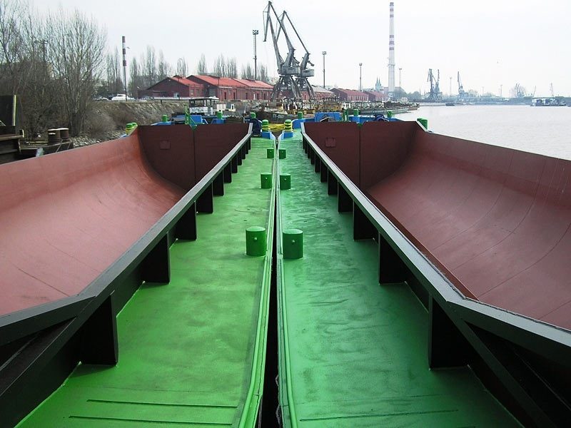 - Самоходная сплит-баржа с объемом трюма 600 м3
