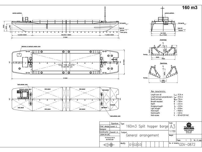 - для внутренних вод (речного исполнения): буксируемые баржи с объемом от 40 до 1000 м3 (80-1900 тонн); самоходные шаланды с объемом от 600 до 1000 м3 (1100-1900 тонн).